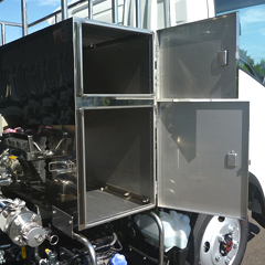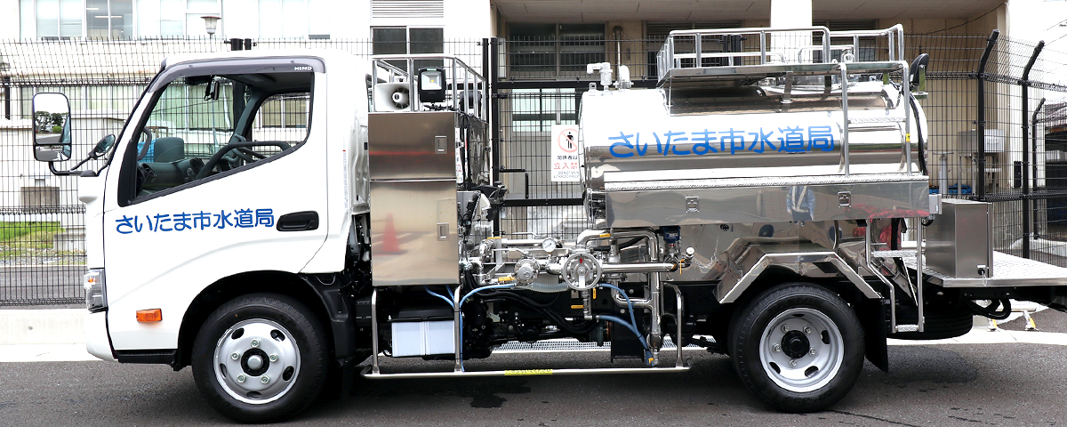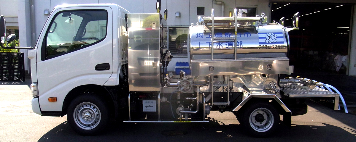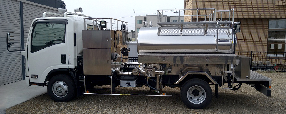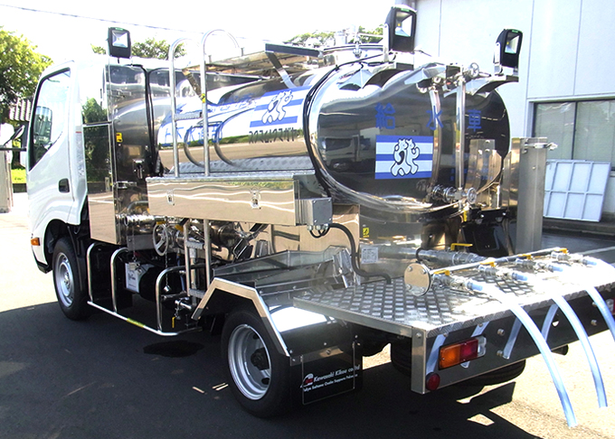 車両一体型給水タンクは希望に合わせた設計が可能なオーダーメイド製です。
